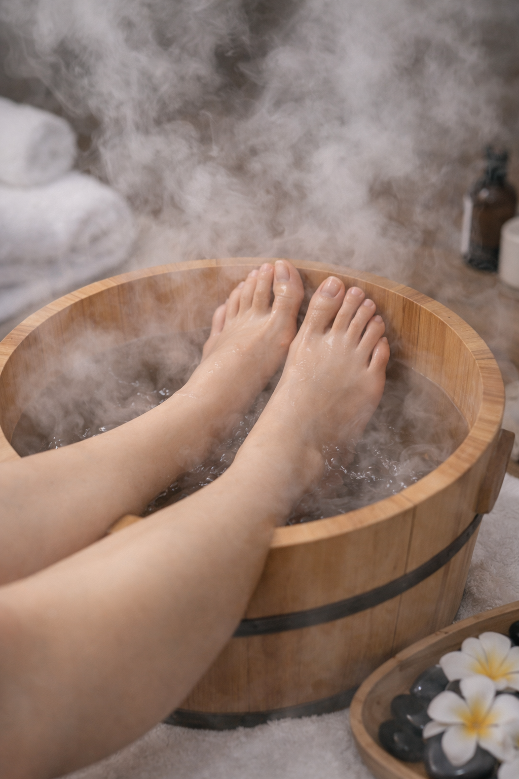 - Warm herbal foot steam to relax the body and...